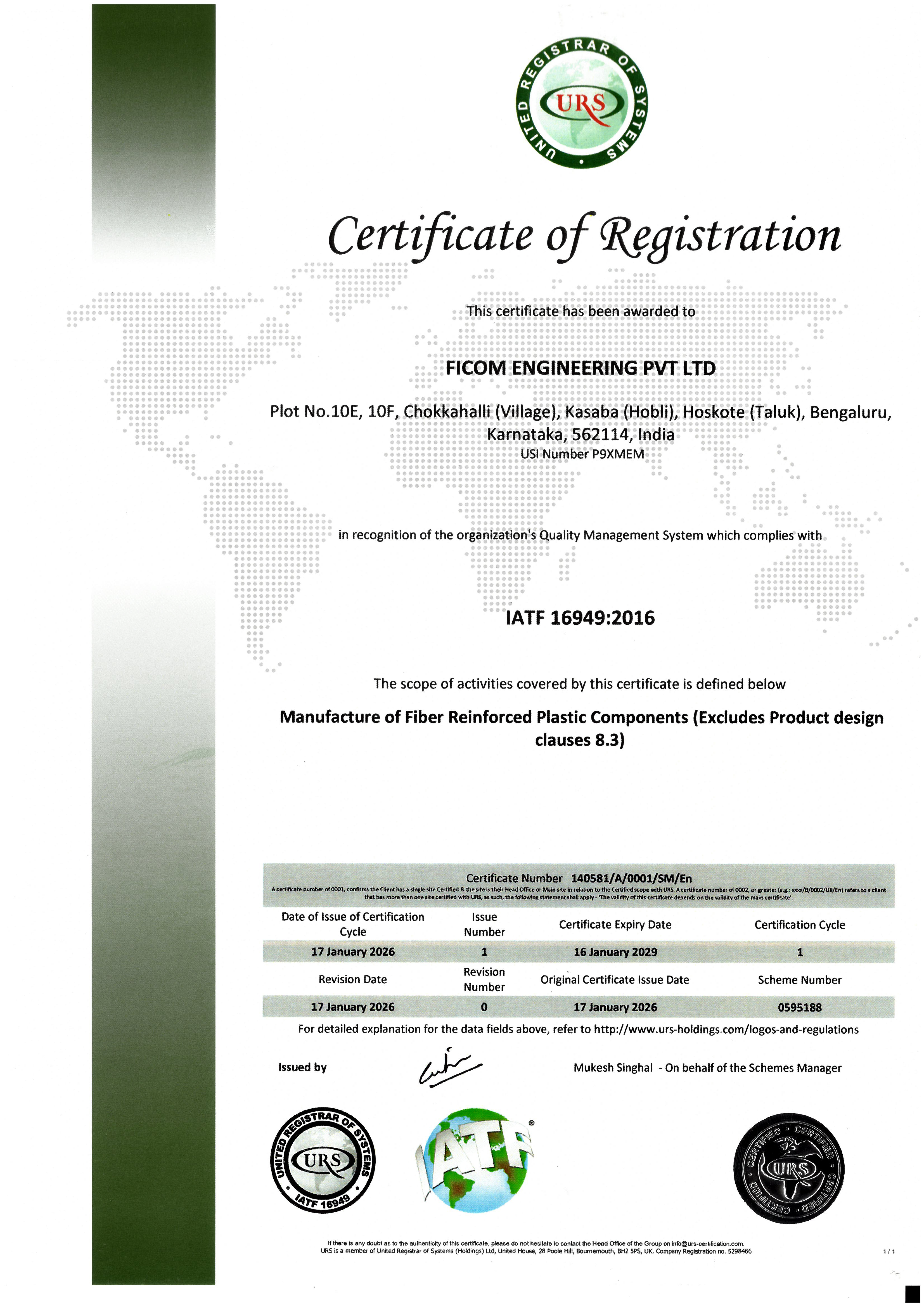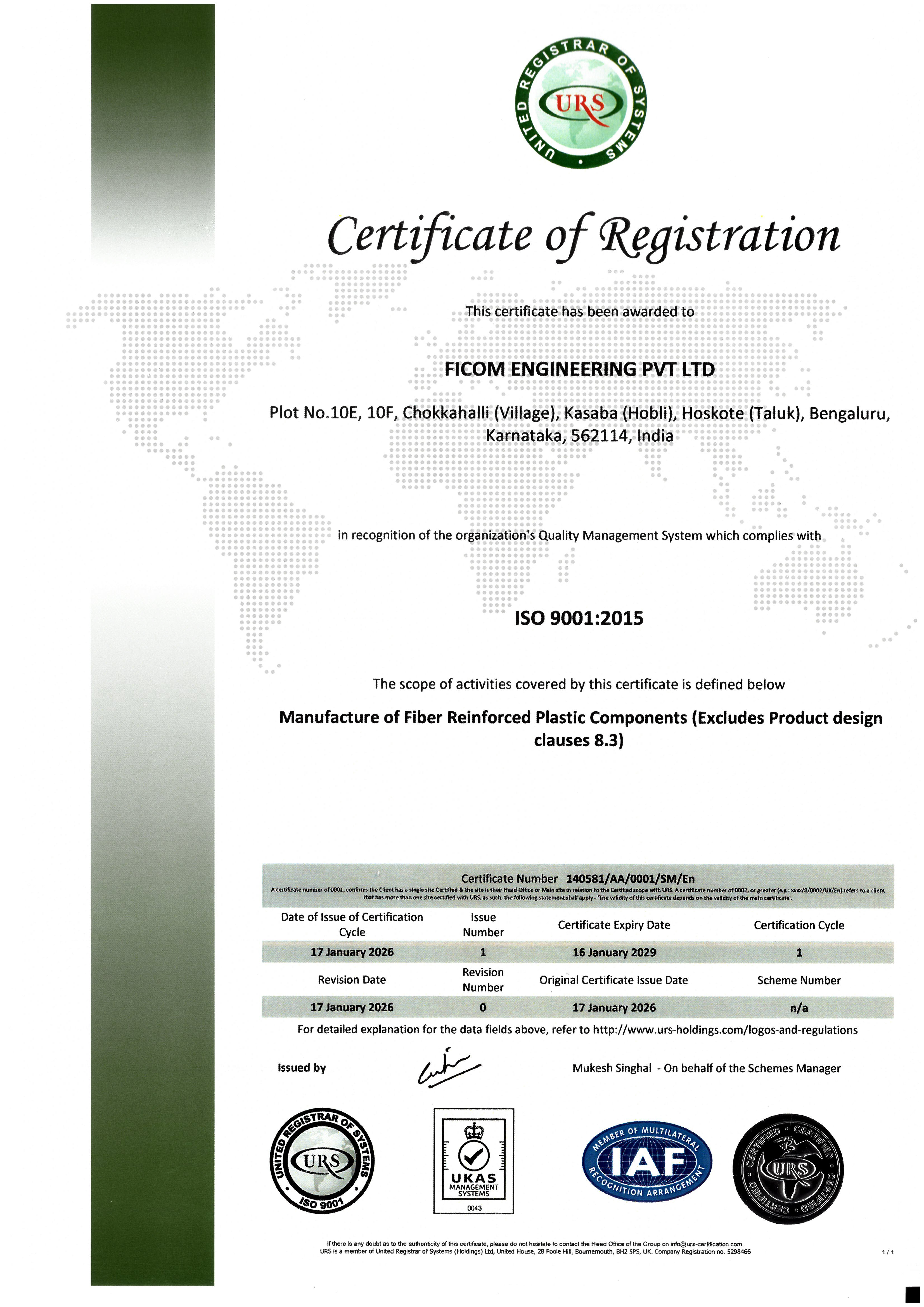 His diligent & consistent efforts since the inception of Ficom Engineering. Has transformed the company's functional ability to the renowned level & has made Ficom., as one of the flagship company among FRP manufacturing companies in the southern region of India.